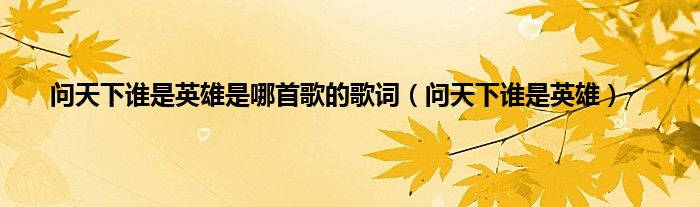 大家好,小问来为大家解答以上问题。问天下谁是英雄是哪首歌的歌词,问天下谁是英雄这个很多人还不知道,现在让我们一起来看看吧!