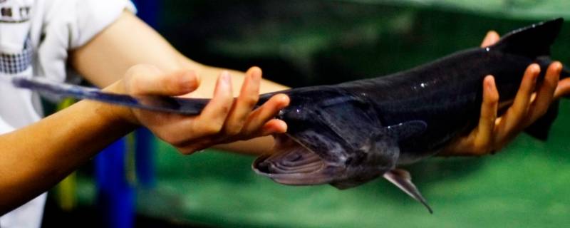 尾巴像鸭子嘴有四肢的是鸭嘴鲟,学名美国匙吻鲟。是美国特有的一种大型淡水经济鱼类。它与我国中华鲟一样,属世界珍稀鱼类。主要以蚯蚓、小虾及浮游生物为食,原产于美国密西西比河流域,是从3亿年之前(即恐龙时期)就在地球上生活,并存留下来的一种珍稀鲟鱼类,是世界上匙吻鲟科中仅有的两个品种之一。它与中华鲟以及长江水域中的白鲟同属鲟形目白鲟科,是鱼类中的极品鱼之一。
