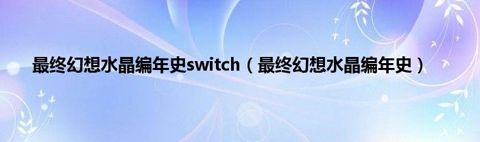 大家好,小问来为大家解答以上问题。最终幻想水晶编年史switch,最终幻想水晶编年史这个很多人还不知道,现在让我们一起来看看吧!
