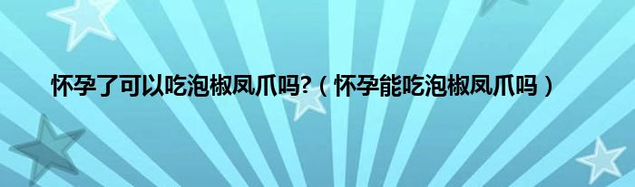 本文,怀孕了可以吃泡椒凤爪吗?,怀孕能吃泡椒凤爪吗到此就分享完毕,希望对大家有所帮助。
