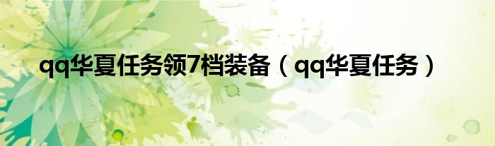 大家好,小问来为大家解答以上问题。qq华夏任务领7档装备,qq华夏任务这个很多人还不知道,现在让我们一起来看看吧!