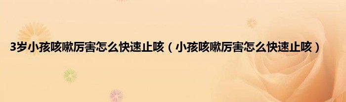 本文,3岁小孩咳嗽厉害怎么快速止咳,小孩咳嗽厉害怎么快速止咳到此就分享完毕,希望对大家有所帮助。