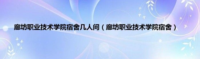 以上就是【廊坊职业技术学院宿舍几人间,廊坊职业技术学院宿舍】相关内容。