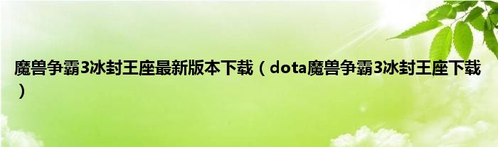 大家好,小问来为大家解答以上问题。魔兽争霸3冰封王座最新版本下载,dota魔兽争霸3冰封王座下载这个很多人还不知道,现在让我们一起来看看吧!