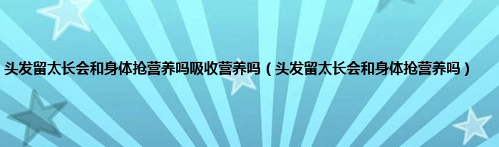 本文,头发留太长会和身体抢营养吗吸收营养吗,头发留太长会和身体抢营养吗到此就分享完毕,希望对大家有所帮助。