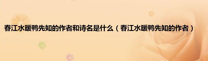 以上就是【春江水暖鸭先知的作者和诗名是什么,春江水暖鸭先知的作者】相关内容。