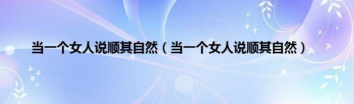 大家好,小问来为大家解答以上问题。当一个女人说顺其自然,当一个女人说顺其自然这个很多人还不知道,现在让我们一起来看看吧!