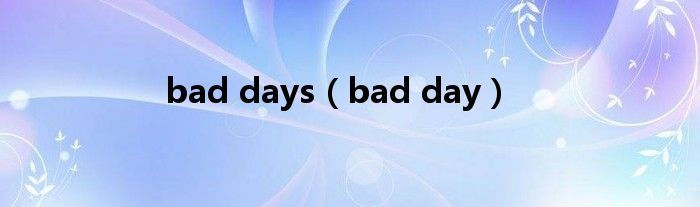 大家好,小问来为大家解答以上问题。bad days,bad day这个很多人还不知道,现在让我们一起来看看吧!