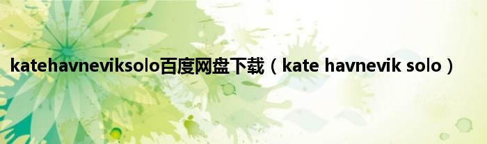 大家好,小问来为大家解答以上问题。katehavneviksolo百度网盘下载,kate havnevik solo这个很多人还不知道,现在让我们一起来看看吧!