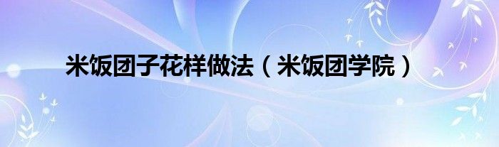 以上就是【米饭团子花样做法,米饭团学院】相关内容。