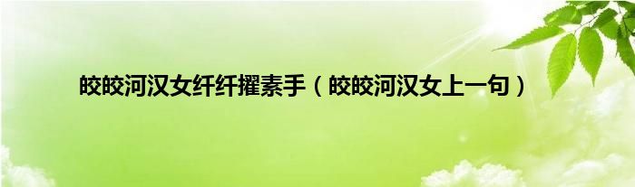 大家好,小问来为大家解答以上问题。皎皎河汉女纤纤擢素手,皎皎河汉女上一句这个很多人还不知道,现在让我们一起来看看吧!