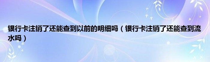 大家好,小问来为大家解答以上问题。银行卡注销了还能查到以前的明细吗,银行卡注销了还能查到流水吗这个很多人还不知道,现在让我们一起来看看吧!
