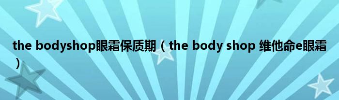 大家好,小问来为大家解答以上问题。the bodyshop眼霜保质期,the body shop 维他命e眼霜这个很多人还不知道,现在让我们一起来看看吧!