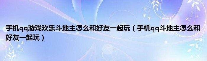 本文,手机qq游戏欢乐斗地主怎么和好友一起玩,手机qq斗地主怎么和好友一起玩到此就分享完毕,希望对大家有所帮助。