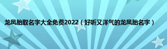 大家好,综合小编来为大家讲解下。龙凤胎取名字大全免费2022,好听又洋气的龙凤胎名字这个很多人还不知道,现在让我们一起来看看吧!