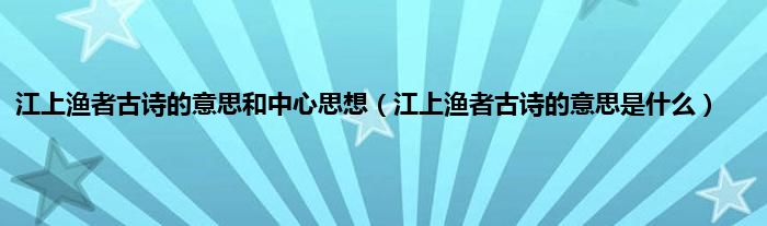 本文,江上渔者古诗的意思和中心思想,江上渔者古诗的意思是什么到此就分享完毕,希望对大家有所帮助。