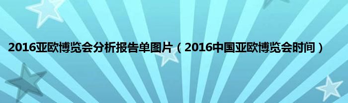 本文,2016亚欧博览会分析报告单图片,2016中国亚欧博览会时间到此就分享完毕,希望对大家有所帮助。