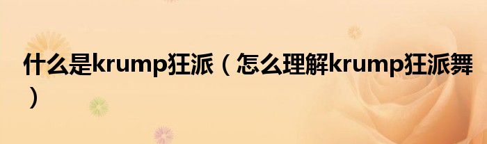 大家好,什么是krump狂派,怎么理解krump狂派舞很多人还不知道,现在让我们一起来看看吧!