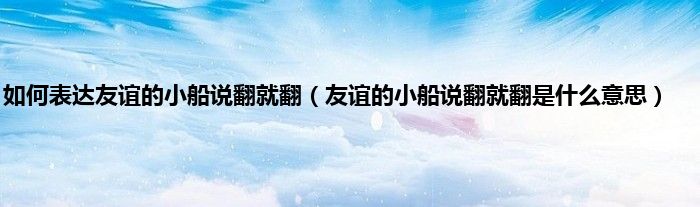 大家好,如何表达友谊的小船说翻就翻,友谊的小船说翻就翻是什么意思很多人还不知道,现在让我们一起来看看吧!
