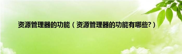 本文,资源管理器的功能,资源管理器的功能有哪些?到此就分享完毕,希望对大家有所帮助。