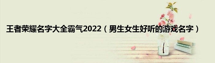 本文,王者荣耀名字大全霸气2022,男生女生好听的游戏名字到此就分享完毕,希望对大家有所帮助。