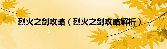 本文,烈火之剑攻略,烈火之剑攻略解析到此就分享完毕,希望对大家有所帮助。