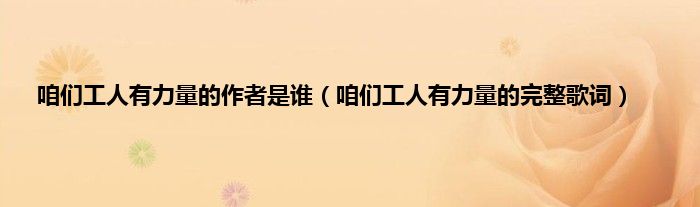 本文,咱们工人有力量的作者是谁,咱们工人有力量的完整歌词到此就分享完毕,希望对大家有所帮助。