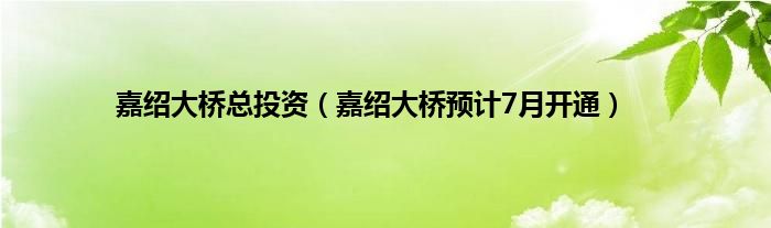 本文,嘉绍大桥总投资,嘉绍大桥预计7月开通到此就分享完毕,希望对大家有所帮助。