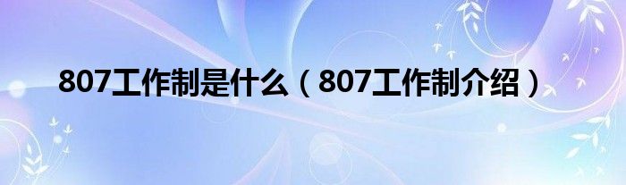 本文,807工作制是什么,807工作制介绍到此就分享完毕,希望对大家有所帮助。