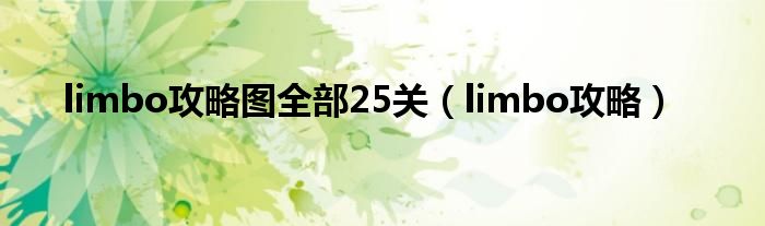 大家好,limbo攻略图全部25关,limbo攻略很多人还不知道,现在让我们一起来看看吧!
