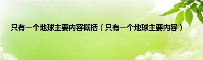 大家好,只有一个地球主要内容概括,只有一个地球主要内容很多人还不知道,现在让我们一起来看看吧!