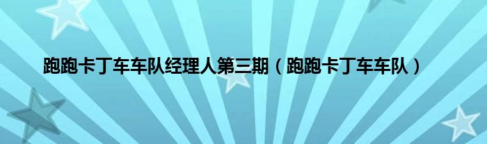 大家好,小问来为大家解答以上问题。跑跑卡丁车车队经理人第三期,跑跑卡丁车车队这个很多人还不知道,现在让我们一起来看看吧!